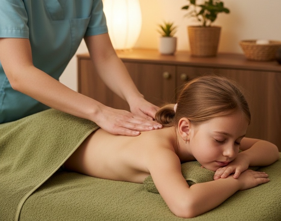 Gyermekeknél elsősorban az iskolai stressz, szorongás, nyugtalanság esetén ajánlott a masszázs, hiszen az érintés, az izomzat gyengéd lazítása az idegrendszeren keresztül nyugtat és javítja a közérzetet.